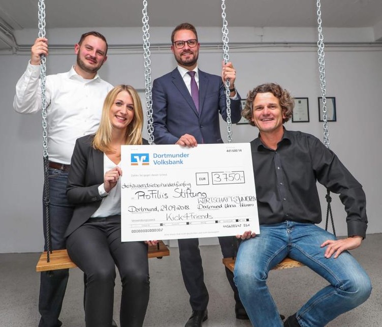 Im Rahmen des Charity-Fußballturniers Kick4Friends, das die Wirtschaftsjunior:innen seit einigen Jahren durchführen, wurden im September 3.750,- Euro gesammelt, die nun der Stiftung ProFiliis gespendet wurden. Die Stiftung verdoppelt die Spende der Wirtschaftsjunior:innen und unterstützt mit insgesamt 7.500,- Euro die Kinderheilstätte in Dortmund: Der Außenbereich der Wohngruppe, in der Kinder und Jugendliche mit geistigen und körperlichen Beeinträchtigungen sowie traumatischen Erlebnissen betreut werden, soll mit dem Geld zu einem attraktiveren Ort der Freizeitgestaltung erweitert werden (http://profiliis.de/news/820).