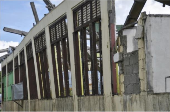 Ein eingestürztes Schulgebäude (Foto: cbm)