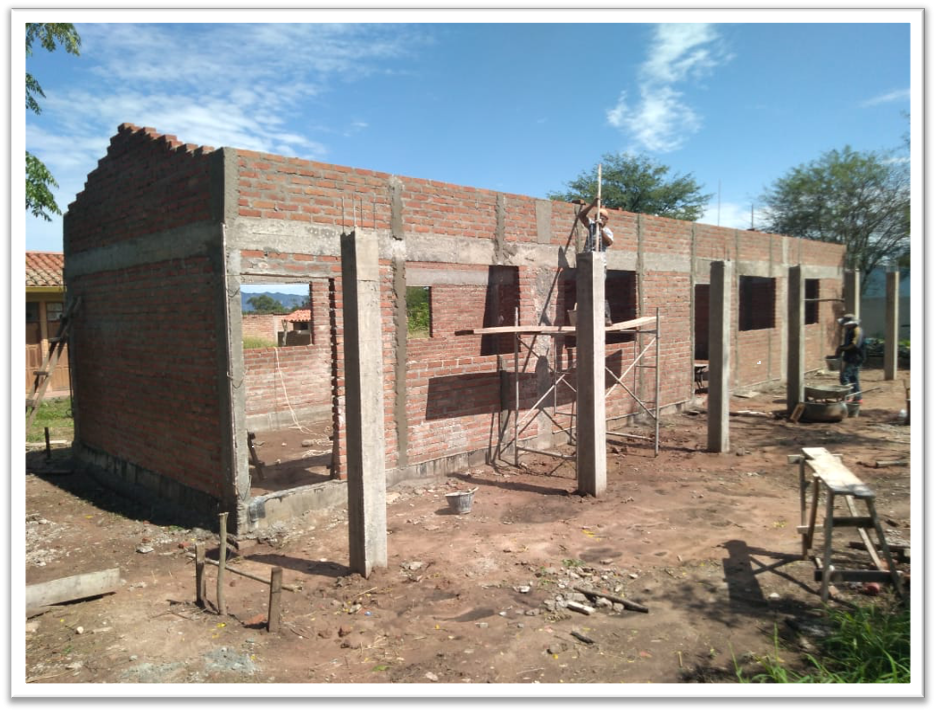In Cuevo ist der Bau der beiden Klassenräume inzwischen zu mehr als 50 % abgeschlossen. Die Bauaufsicht wird durch eine zuständige Peson der Gemeinde sicher gestellt, um die Bauqualität zu erhalten. Außerdem wird die Einrichtung der Klassenräume bereits vorbereitet: Multimedia-Geräte werden angeschafft und Anträge zur Beschaffung von Stühlen und Tischen gestellt. Auch didaktische Materialien sowie infektionsvermeidende Vorrichtungen und Materialen gegen COVID-19 wurden angeschafft.