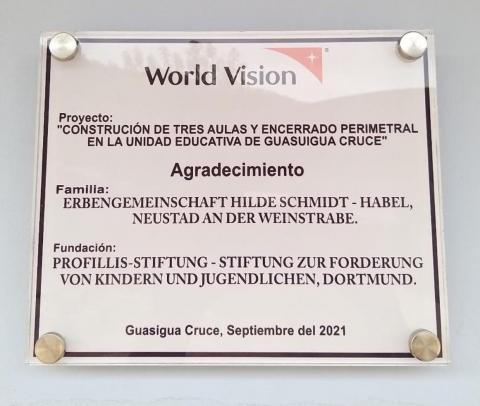 Nach einer etwas mehr als 1jährigen Bauzeit konnten die beide Schulgebäude im 2. Halbjahr 2021 fertiggestellt und eingeweiht werden. Bevor wir auf die Einzelheiten des Projektes eingehen, möchten wir das von World Vision Mitarbeitern unter Einbeziehung von Schüler:innen, der Schulleiterin, Verantwortlichen aus der kommunalen Verwaltung und Eltern erstellte Video zum Anschauen empfehlen. Es spiegelt auf recht eindrucksvolle Weise den geschaffenen Mehrwert und Nutzen für die Menschen vor Ort wider - hier bezogen auf das Teilprojekt in Guasuigua. Ganz bestimmt sind die Inhalte in ähnlicher Weise auch auf das 2. Teilprojekt in Cuevo übertragbar. Mehr dann zu Hintergründen, Finanzierung und Entwicklung des Projektes weiter unten.