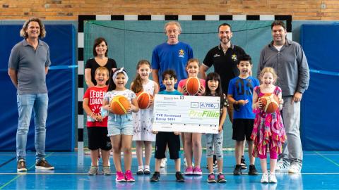 Bisher wurde das Projekt „TVE macht Schule“ zu großen Teilen von der Abteilung „Talentsicherung/Talentförderung“ beim Landessportbund finanziert. Nun gab es eine inhaltliche Neuausrichtung und seit dem Schuljahr 2020/21 erhält der TVE Dortmund-Barop keine Fördermittel mehr vom Land NRW für das Projekt. Aus diesem Grund wendete sich der TVE an die ProFiliis-Stiftung, die das Projekt bereits im Schuljahr 2015/16 unterstützt hat. ProFiliis sagte dem Verein finanzielle Hilfe zu, sodass der Fortbestand des Projektes auch unabhängig von der Förderung des Landessportbundes vorerst gesichert ist. Mit 3.750,- Euro können 250 Einsätze von Übungsleiter:innen im Sportunterricht bzw. in den AGs finanziert werden. Zudem wurden 1.000,- Euro für Trainingshilfen (u. a. Bälle, Ballnetze, Springseile) bereitgestellt.