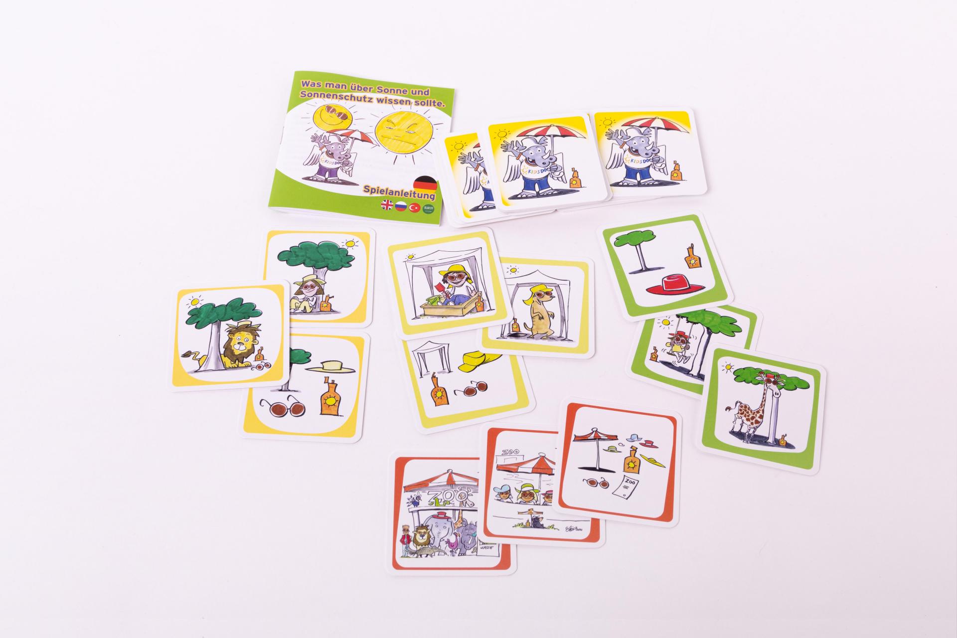 Um das schon den ganz Kleinen zu vermitteln, hat das Klinikum Dortmund gemeinsam mit dem Zeichner und Texter Michael Hüter zusammengearbeitet und ein Memory-Spiel entwickelt, das den Kindern spielerisch die Grundlagen für einen sinnvollen Sonnenschutz nahebringen soll.