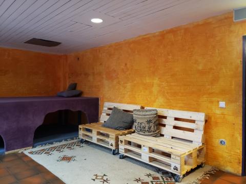 Konkret gibt es einen multifunktionalen Raum, der von den Kindern häufig als Bewegungs- und Spieleraum, von den Jugendlichen vorrangig als gemütlicher Aufenthaltsraum genutzt wird. Bisher war dieser Raum mit alten Sofas möbliert, die nicht mehr wirklich nutzbar geschweige denn bequem waren. Als die Besucher:innen im Rahmen einer Jugendzentrums-Vollversammlung im Mai 2024 dann den Wunsch nach neuen Möbeln äußerten war sofort klar: Es muss etwas geschehen!