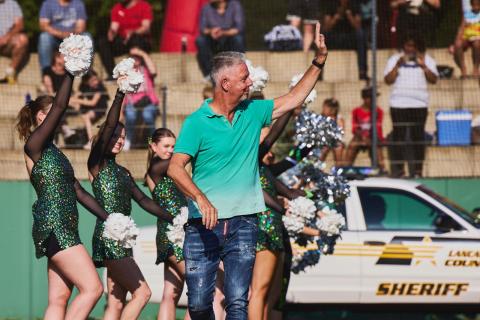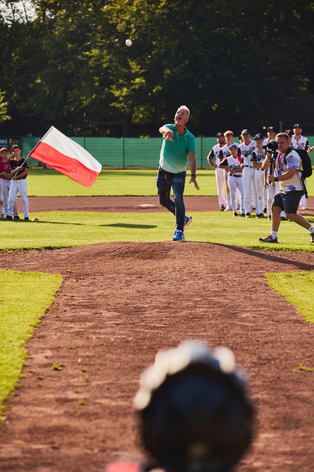 So stand einem fröhlichen und unbeschwerten Turnier nichts mehr im Wege! Den Auftakt bildete eine spektakuläre Eröffnungszeremonie mit Livemusik, Cheerleading-Einlagen und verschiedenen Showacts. Die große Ehre des „zeremoniellen first pitch“ – also des ersten Wurfs des Turniers – wurde dem Sportjournalisten Heiko Waßer zuteil, der Einigen in seiner Rolle als Kommentator der Formel 1 bei RTL bekannt sein dürfte.