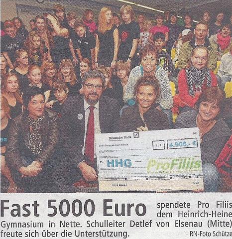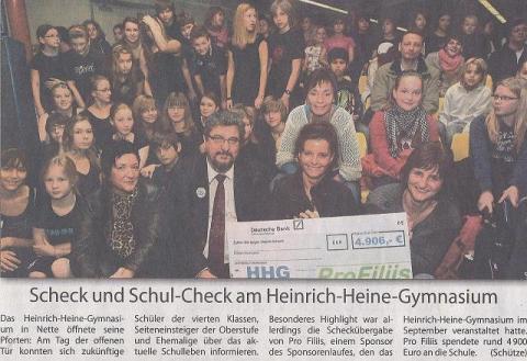 Das Heinrich Heine Gymnasium im Stadtteil Nette wird von ca. 780 Schülerinnen und Schülern besucht. Hauptaufenthaltsbereich während der Pausen ist das pädagogische Zentrum der Schule. Um diesen Bereich für die Schüler:innen attraktiver zu gestalten, hat der Elternverein des Heinrich-Heine-Gymnasiums einen Sponsorenlauf organisiert, der am 24.9.2010 begleitet von einem Rahmenprogramm mit Kaffee, Kuchen und anderen Köstlichkeiten auf dem Schulgelände des HHG stattfand.