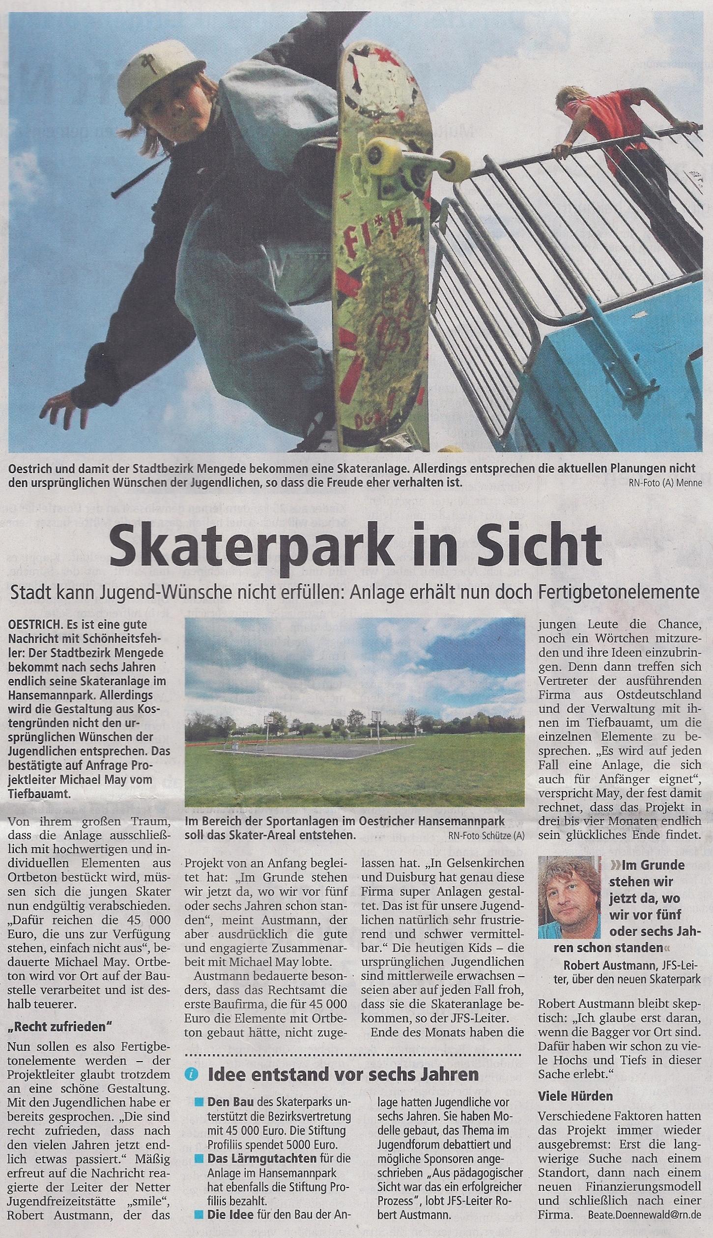 Da die im Haushaltsplan 2011 der Bezirksvertretung bereitgestellten Mitteln für die Realisierung des Projektes nicht ausreichen werden, hat ProFiliis bereits in 2010 eine Förderung in Höhe von 5.000,- Euro verbindlich zugesagt.