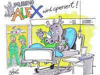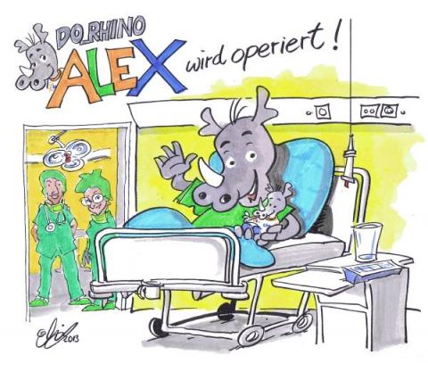 Um den kleinen Patient:innen die Angst zu nehmen und ihnen ihren Aufenthalt angenehmer zu gestalten, hat das Westfälische Kinderzentrum das kleine Nashorn „Alex“ zum Leben erweckt und seine Geschichte in einem 2011 erschienen Büchlein illustriert und abgedruckt. Alex sieht in diesem Band zum ersten Mal ein Krankenhaus und mit ihm zusammen können die jungen Leser:innen alles Wissenswerte rund um das Thema Krankenhaus kennenlernen.