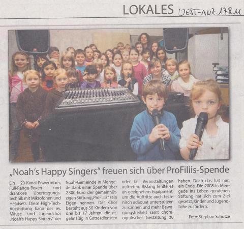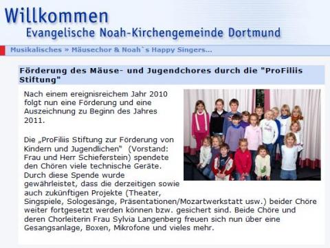 Zum Mäuse- und Jugendchor der evangelischen Noah-Gemeinde im Stadtbezirk Dortmund-Mengede gehören insgesamt über 50 Kinder im Alter von 3 - 17 Jahren. Beide Chöre, die von der Chorleiterin Sylvia Langenberg betreut werden, treten regelmäßig in Gottesdiensten oder eigens angesetzten Veranstaltungen auf.
