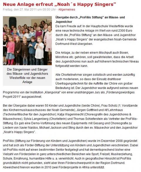Der Jugendchor "Noah's Happy Singers" ist Projektpreisträger 2011 des Dortmunder Musikfestivals "Klangvokal"