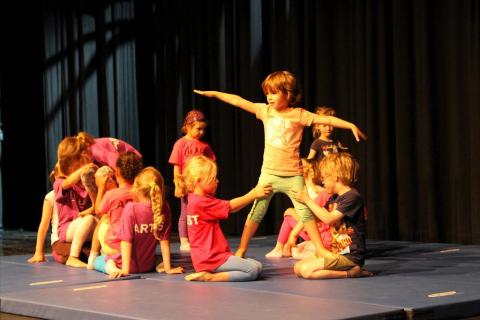 In Workshops aus den Bereichen Theater, Zirkus, Sport und Tanz lernen die Kinder unter Anleitung von professionellen Artist:innen außergewöhnliche künstlerische Ausdrucksformen