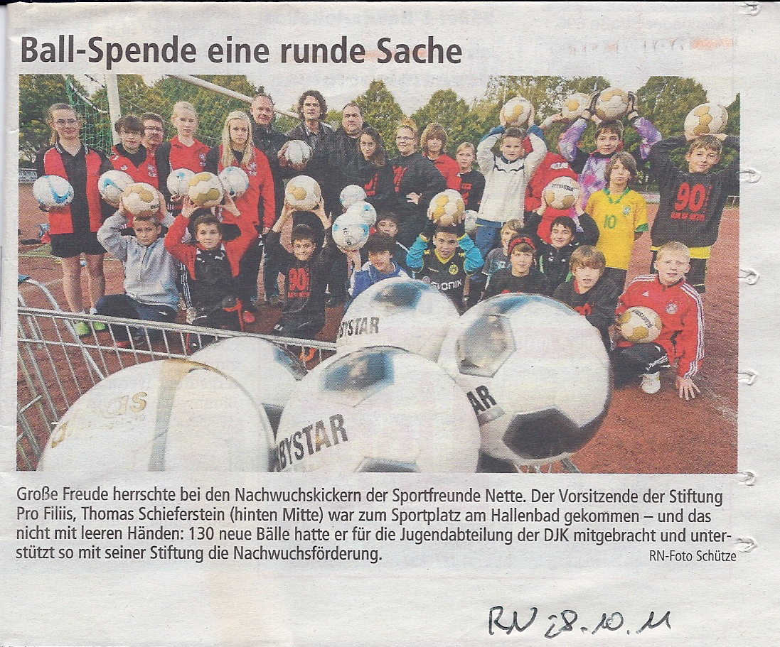 „Gerade zur neuen Saison mussten wir für mehrere Jugendjahrgänge verschiedene Fußbälle anschaffen. Da kam uns die Unterstützung durch ProFiliis sehr gelegen. Wir hoffen in der Zukunft noch das ein oder andere gemeinsam auf die Beine zu stellen“, freut sich Norbert Heß, Jugendleiter des DJK SF Nette.