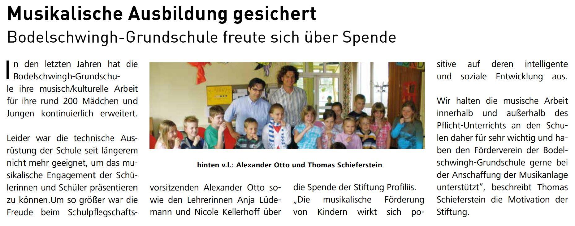 "Die musikalische Förderung von Kindern wirkt sich positiv auf deren intellektuelle und soziale Entwicklung aus. Wir halten die musische Arbeit innerhalb und außerhalb des Pflicht-Unterrichtes an den Schulen daher für sehr wichtig und haben den Förderverein der Bodelschwingh-Grundschule gerne bei der Anschaffung der Musikanlage unterstützt“, beschreibt Thomas Schieferstein die Motivation der Stiftung.